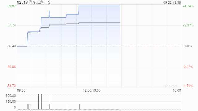 汽車之家-S(02518)午盤持續(xù)上揚(yáng),股價(jià)現(xiàn)上漲4.70%,現(xiàn)報(bào)59.05港元,成交額12.114萬(wàn)港元,總市值逼近300億港元。