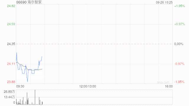 海爾智家9月25日斥資480.5萬元回購20萬股A股