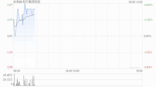 知行集團控股(01539)現(xiàn)漲6.56%,報0.65港元,成交額168.770萬港元。
