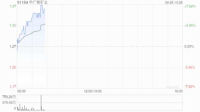 中廣核礦業(yè)早盤漲幅持續(xù)擴大 股價現(xiàn)漲近9%