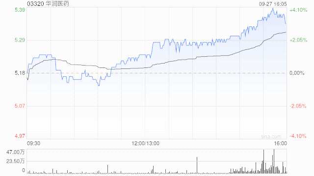 華潤醫(yī)藥(03320)午盤漲幅持續(xù)擴大,尾盤上漲3.67%,現(xiàn)報5.37港元,成交額5293.758萬港元。