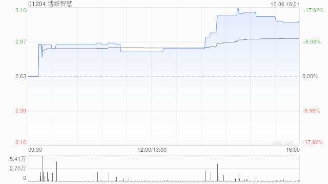 博維智慧尾盤漲超14% 中期收益同比增長59.6%