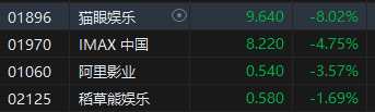 10月9日消息,港股影視股普遍下跌,截至發(fā)稿,貓眼娛樂跌超8%。