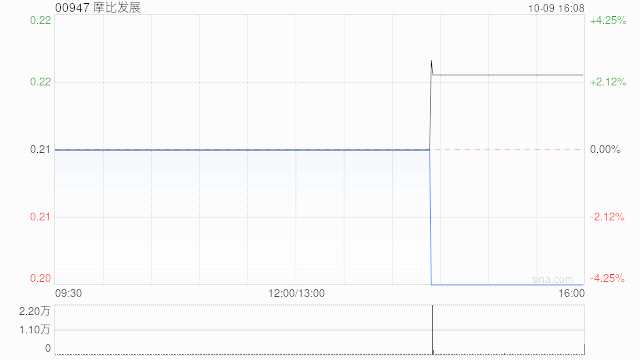 摩比發(fā)展(00947)發(fā)布公告,于2023年10月9日該公司斥資4400港元回購2萬股,回購價格為每股0.22港元。