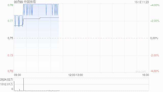 中國鐵塔(00788)早盤上漲4%,現(xiàn)報0.78港元,成交額5326.34萬港元。