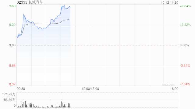 長城汽車(02333)午盤上漲8.78%,現(xiàn)報(bào)9.79港元,成交額5.38億港元。
