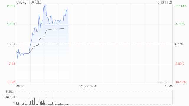 十月稻田(09676)早盤持續(xù)走高,上漲7.22%,現(xiàn)報(bào)20.20港元,成交額613.10萬港元。