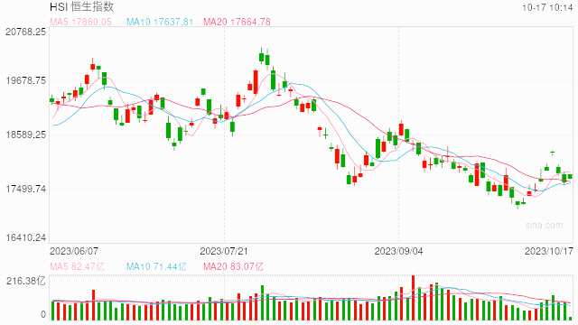 10月17日消息,美股周一大幅向好,地緣政局有受控跡象,避險(xiǎn)情緒降溫,刺激三大指數(shù)均錄得顯著升幅收市。美元走勢(shì)回落,美國(guó)十年期債息回升至4.70厘水平,金價(jià)及油價(jià)略為偏軟。今日港股三大指數(shù)集體高開(kāi),恒生指數(shù)漲0.94%,報(bào)17806.23點(diǎn),恒生科指漲1.15%,國(guó)企指數(shù)漲0.98%。盤(pán)面上,科網(wǎng)股集體上漲,京東集團(tuán)漲超3%,美團(tuán)、嗶哩嗶哩、快手、小米集團(tuán)漲超1%;汽車(chē)股漲勢(shì)活躍,蔚來(lái)漲超2%;內(nèi)房股多數(shù)上漲,中國(guó)恒大漲超3%;體育用品股漲幅居前,滔搏漲近5%。