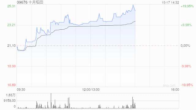 十月稻田午盤漲幅持續(xù)擴大現(xiàn)漲超16% 再創(chuàng)上市新高