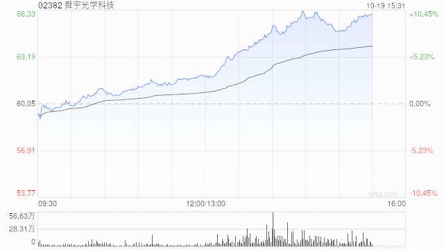 舜宇光學(xué)科技(02382)午后漲幅持續(xù)升高,上漲9.74%,現(xiàn)報65.90港元,成交額12.46億港元。