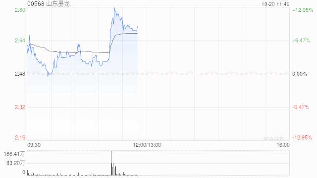 山東墨龍(00568)盤(pán)中曾漲超12%,高見(jiàn)2.81港元,股價(jià)略回落至上漲8.47%,現(xiàn)報(bào)2.69港元,成交額3029.72萬(wàn)港元。