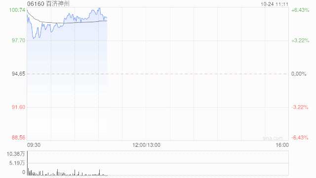 百濟神州(06160)早盤上漲5.28%,現報99.65港元,成交額5821.98萬港元。