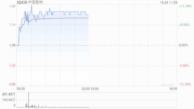 中寶新材(02439)早盤持續(xù)上漲至8.33%,現(xiàn)報1.17港元,成交額1437.73萬港元。