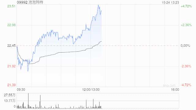 摘要: 泡泡瑪特(09992)發(fā)布公告,2023年第三季度整體收益(未經審核),較2022年第三季度同比增長35%-40%,其中內地收益同比增長25%-30%,港澳臺及海外收益同比增長120%-125%。