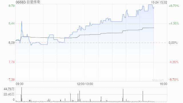 巨星傳奇(06683)午后持續(xù)上揚(yáng),漲8.28%,現(xiàn)報(bào)8.76港元,成交額3737.28萬(wàn)港元。