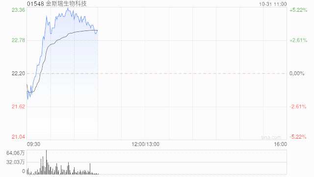 金斯瑞生物科技(01548)早盤上漲3.82%,現(xiàn)報(bào)23.05港元,成交額2.38億港元。