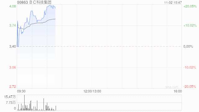 BC科技集團(00863)早盤上漲11.77%,8月以來累計大漲135%,現(xiàn)報3.80港元,成交額465.51萬港元。