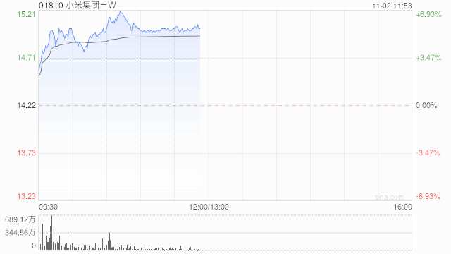 大和:維持小米集團-W“跑贏大市”評級 目標(biāo)價升至15.5港元