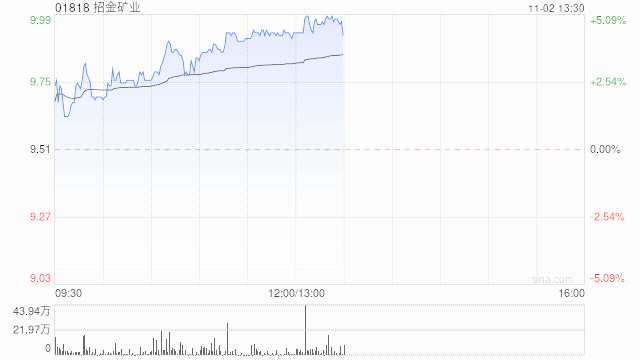 招金礦業(yè)(01818)午后漲幅持續(xù)擴大,上漲5.05%,現(xiàn)報9.99港元,成交額6895.87萬港元。