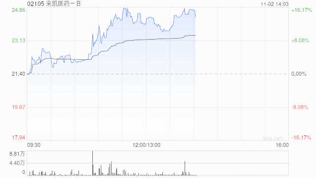 來(lái)凱醫(yī)藥-B現(xiàn)漲超10% 盤中曾創(chuàng)上市新高