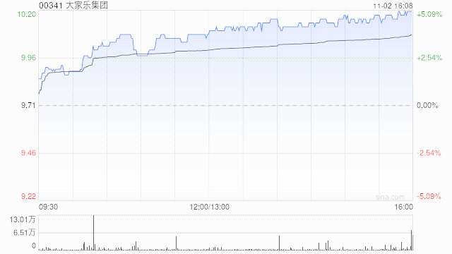 大家樂集團(tuán)尾盤漲近5% 自10月24日以來累計(jì)漲近30%