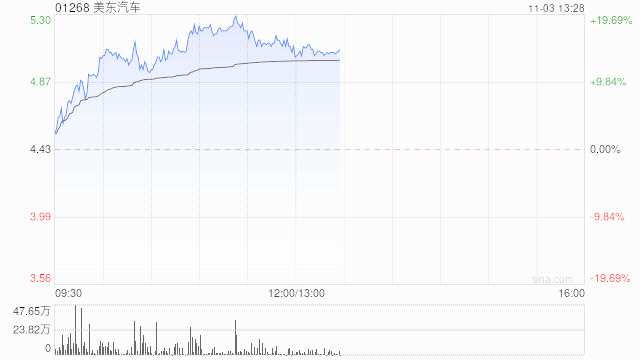 美東汽車午后漲近15% 暫現(xiàn)三連陽