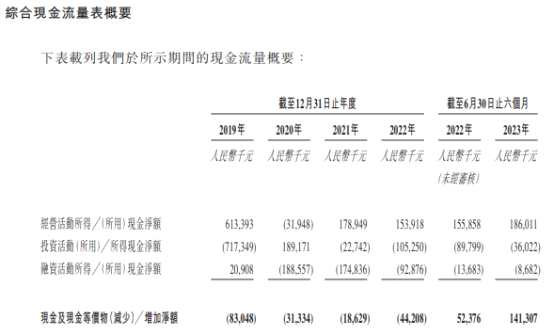 2019年至2023年1-6月,友寶在線的經(jīng)營活動所得現(xiàn)金凈額分別為6.13億元、-3194.8萬元、1.79億元、1.54億元及1.86億元。
