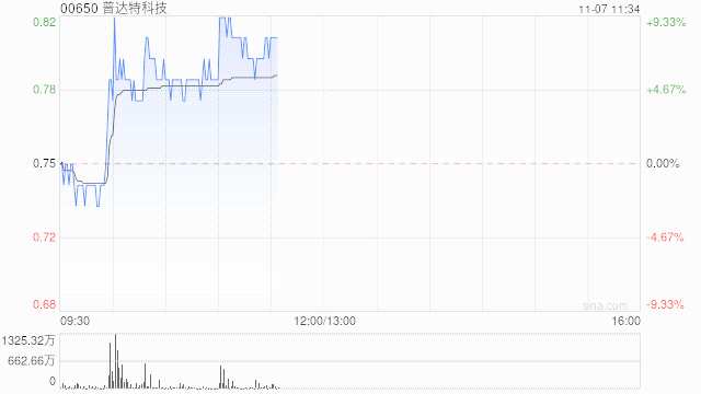 普達(dá)特科技(00650)早盤漲幅持續(xù)擴(kuò)大,上漲8%,現(xiàn)報(bào)0.81港元,成交額8744.38萬港元。