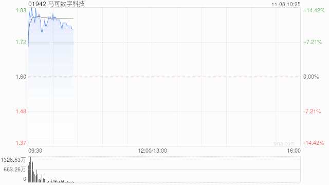 馬可數(shù)字科技(01942)早盤高開,現(xiàn)漲13.13%,報(bào)1.81港元,成交額1.69億港元。