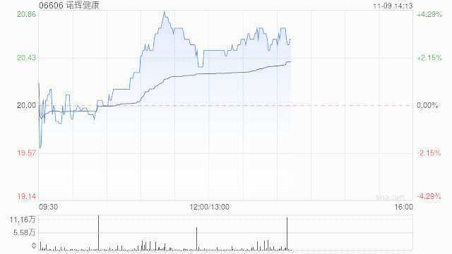 諾輝健康(06606)午后上漲3%,現(xiàn)報20.7港元,成交額1981.07萬港元。
