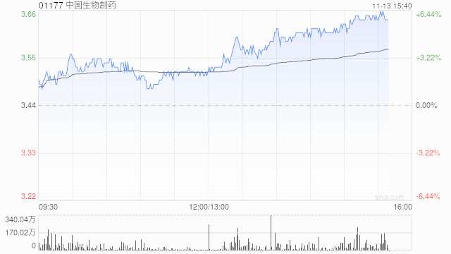 中國(guó)生物制藥午后漲幅持續(xù)擴(kuò)大 股價(jià)現(xiàn)漲近6%