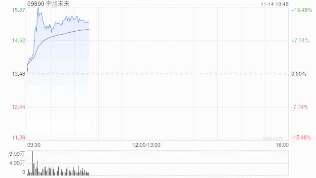 中旭未來(09890)早盤上漲12.32%,現(xiàn)報15.14港元,曾一度高見15.88港元,創(chuàng)上市以來新高,成交額1864.54萬港元。