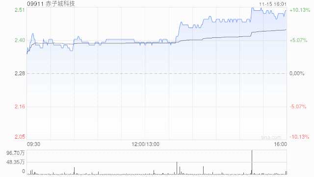 赤子城科技(09911)午盤漲幅持續(xù)擴大,上漲9.21%,報2.49港元,成交額1694.96萬港元。