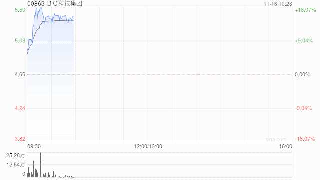 BC科技集團(tuán)(00863)早盤上漲15.45%,現(xiàn)報(bào)5.38港元,成交額912.37萬(wàn)港元。