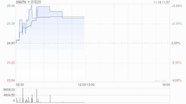 十月稻田(09676)早盤(pán)上漲3.83%,現(xiàn)報(bào)25.75港元,成交額155.85萬(wàn)港元,10月上市以來(lái)累計(jì)大漲55%。