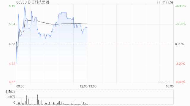 BC科技集團(00863)早盤逆市上漲3.28%,報5.04港元,成交額424.85萬港元。