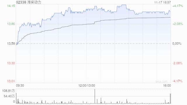 濰柴動(dòng)力(02338)尾盤上漲3.09%,現(xiàn)報(bào)14港元,成交額2.01億港元。