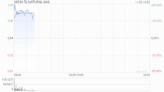 TL NATURAL GAS(08536)早盤上漲21.43%,現(xiàn)報1.02港元,成交額580.89萬港元。