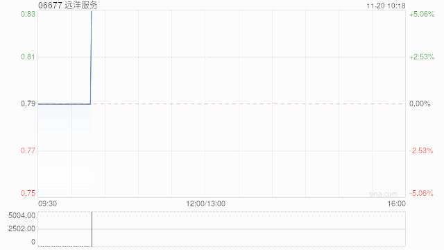 遠(yuǎn)洋服務(wù)(06677)早盤直線拉升,上漲5.06%,現(xiàn)報(bào)0.83港元,港股市值9.83億港元。