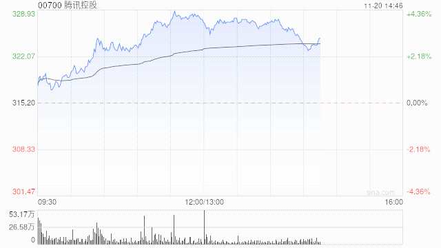 騰訊(00700)午后上漲3.55%,現(xiàn)報(bào)326.40港元,成交額61.94億港元。