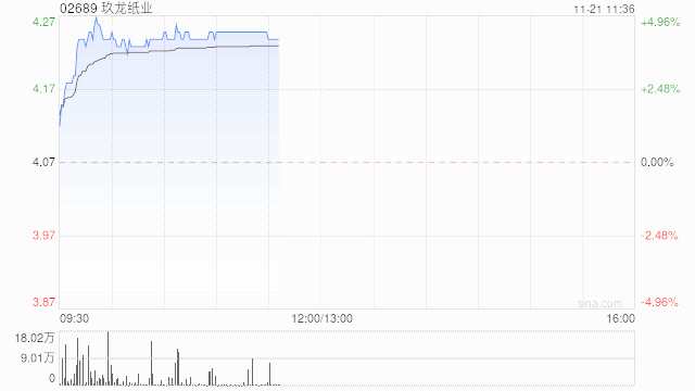 紙業(yè)股早盤普遍上漲 玖龍紙業(yè)漲超4%理文造紙漲近3%