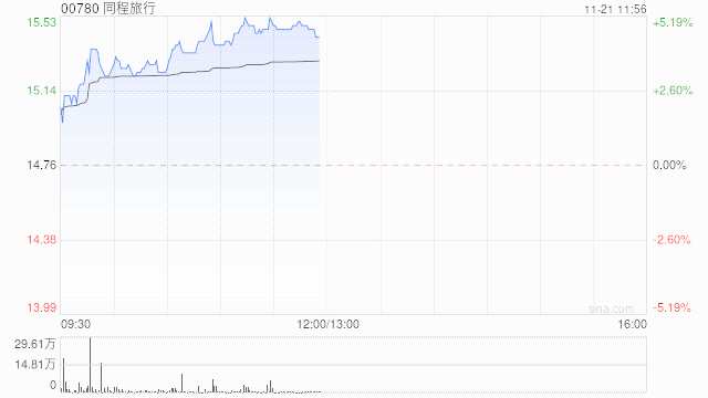 同程旅行(00780)早盤上漲4.74%,現(xiàn)報(bào)15.46港元,成交額3231.89萬港元。