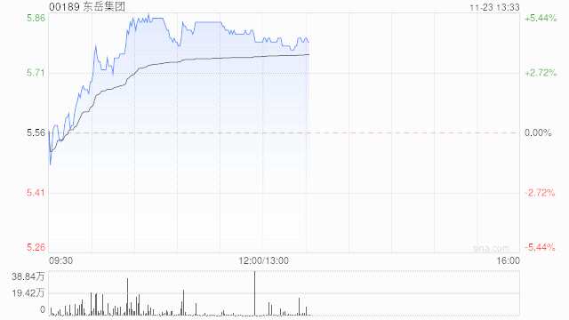 東岳集團(00189)早盤上漲4.14%,現(xiàn)報5.79港元,成交額3637.90萬港元。