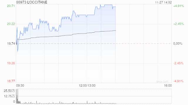 歐舒丹午后漲近5% 中金給予目標(biāo)價(jià)28港元