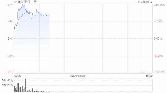 浙江世寶(01057)早盤曾大漲13.11%,高見(jiàn)2.78港元,股價(jià)稍回落至上漲7.79%,現(xiàn)報(bào)2.63港元,成交額8898.48萬(wàn)港元。