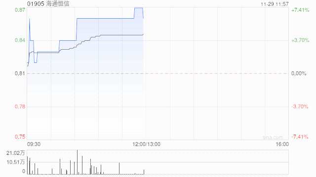 海通恒信早盤漲幅持續(xù)擴大 股價現(xiàn)漲超7%