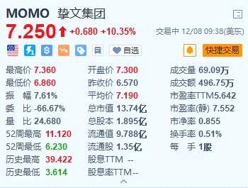 摘要: 來源:互聯(lián)網(wǎng)摯文集團(tuán)(MOMO.US)漲10.35%,報7.25美元。摯文集團(tuán)第三季度凈營收為30.428億元,略高于市場預(yù)期的29.55億元;凈利潤為5.464億元,同比增長21.2%。