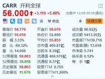 空調(diào)制造商開利(CARR.US)漲5.88%,報(bào)56美元。美國工業(yè)公司霍尼韋爾周五表示,將以49.5億美元收購開利的安全業(yè)務(wù)。兩家公司在一份聲明中說,開利預(yù)計(jì)將從這筆交易中獲得約 40 億美元的凈收益,并打算用這筆資金償還債務(wù)。該交易預(yù)計(jì)將在 2024 年第三季度結(jié)束前完成。