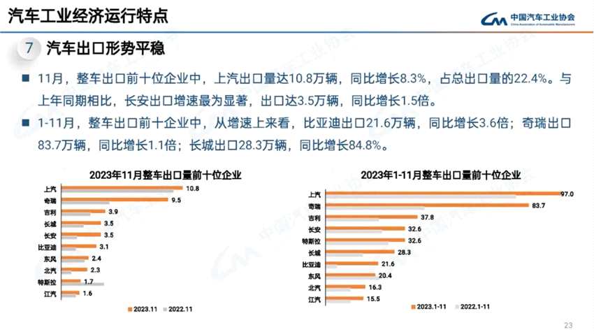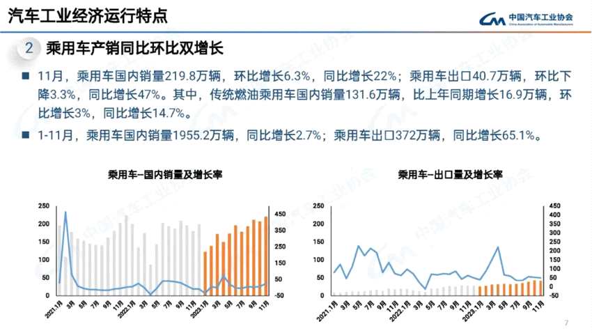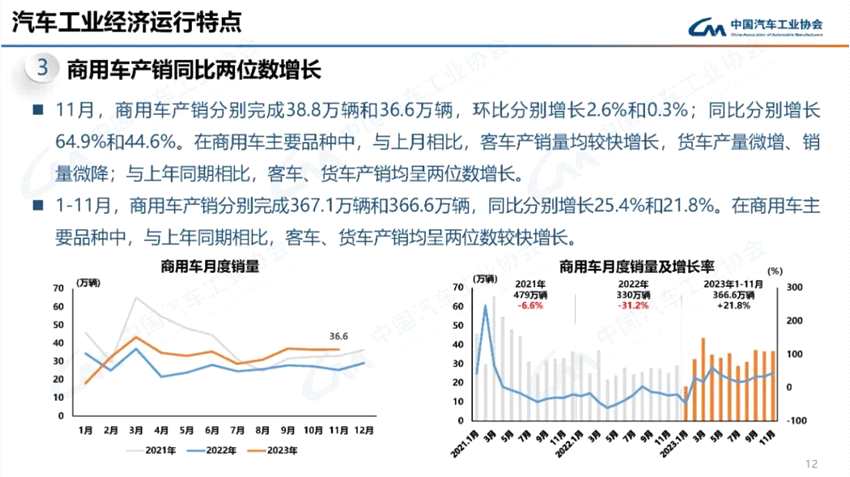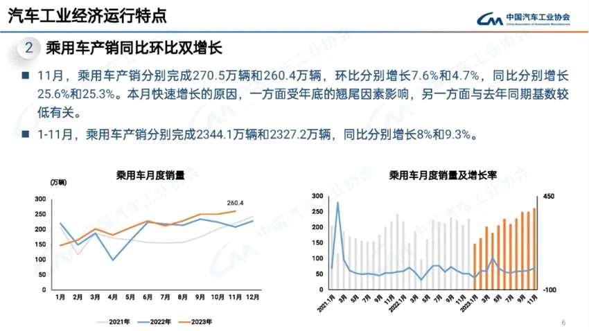 中汽協(xié)指出,11月,汽車市場熱度延續(xù),借助“雙11”大促等消費浪潮,購車需求進一步釋放,市場表現(xiàn)持續(xù)向好、超出預(yù)期。乘用車延續(xù)良好態(tài)勢,商用車保持較快增長,新能源汽車和汽車出口引領(lǐng)行業(yè)增長。伴隨政策效果持續(xù)顯現(xiàn),各地車展及促銷活動持續(xù)發(fā)力,加之企業(yè)最后一月收尾沖刺,預(yù)計12月汽車市場將會持續(xù)向好,再現(xiàn)年底“翹尾”現(xiàn)象。汽車產(chǎn)銷全年有望創(chuàng)造歷史新高,超預(yù)期完成全年預(yù)測目標(biāo)。