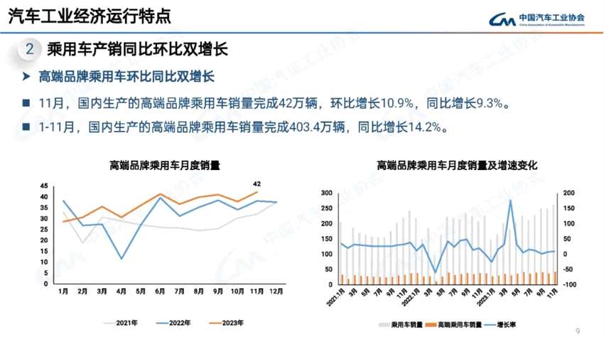 摘要: 12月11日,中汽協(xié)最新數(shù)據(jù)顯示,11月,汽車產(chǎn)銷環(huán)比同比均實現(xiàn)增長,汽車產(chǎn)銷分別完成309.3萬輛和297萬輛,環(huán)比分別增長7%和4.1%,同比分別增長29.4%和27.4%。